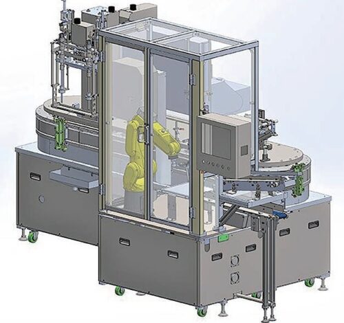 Requires only one operator to fill and cap bottles and spout pouches which are typically difficult to process with conventional machines