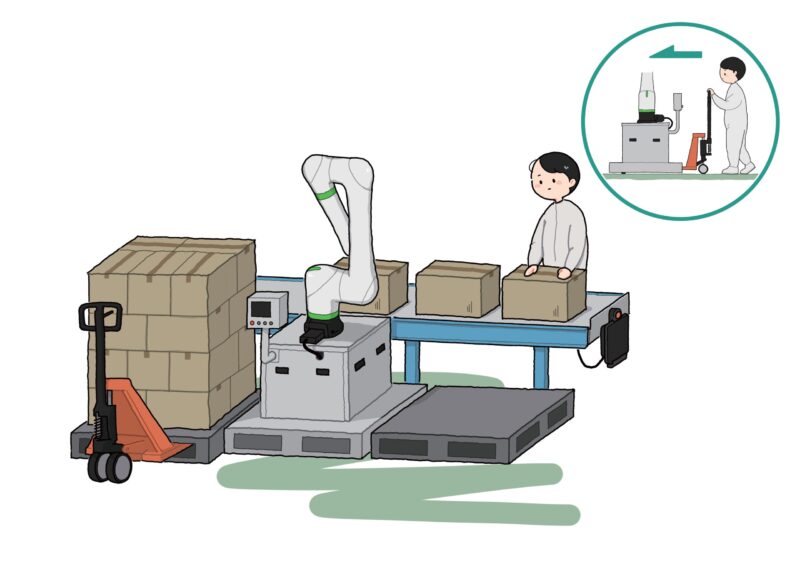 ・Approximately 35% lower cost compared to conventional fixed-type collaborative robot palletizers.