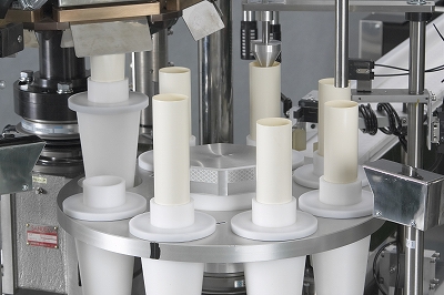 ・ボトル高速回転による遠心脱泡を標準装備によりチューブ製品、クリーム充填の複合生産を実現
